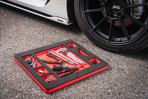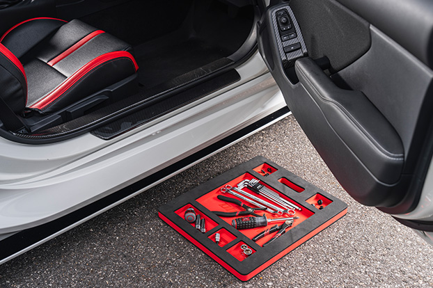 柔らかい素材が工具を置く音を吸収し、整備や作業中の工具同士が当たる音を和らげます。
