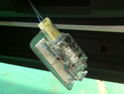 | 9)ユニットと車輌側のカプラーを取り付けます。 ※この時点でバッテリーのマイナス端子を繋げ、点灯確認を行って下さい。 ※LEDには極性がありますので、点灯しない場合は極性を入れ替えてください。 |