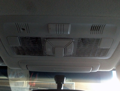 2)純正のマップランプレンズを外します。 ツメで固定されているので、レンズや天井等に傷のつかないように外してください。 |